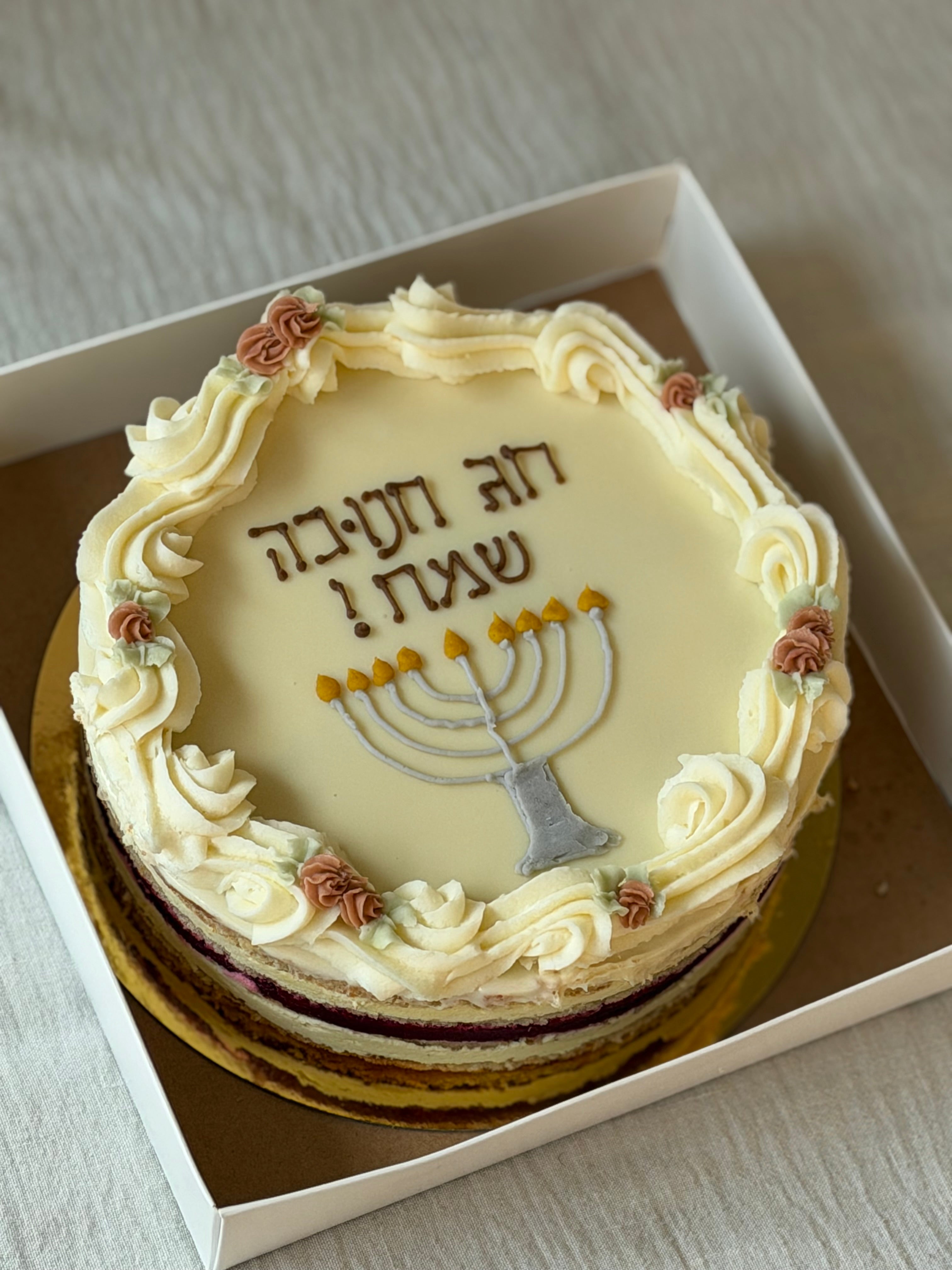 עוגת שכבות פטל-פיסטוק בעיצוב מהמם לחנוכה